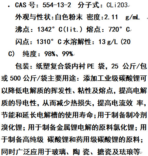 工業(yè)級碳酸鋰 99%